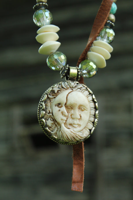 ARB- Moon/Sun Bone Carved Necklace