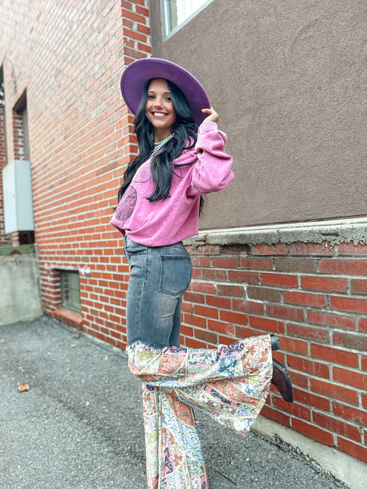BLUE- Crochet Mesh Side Panel Wide Leg Jean