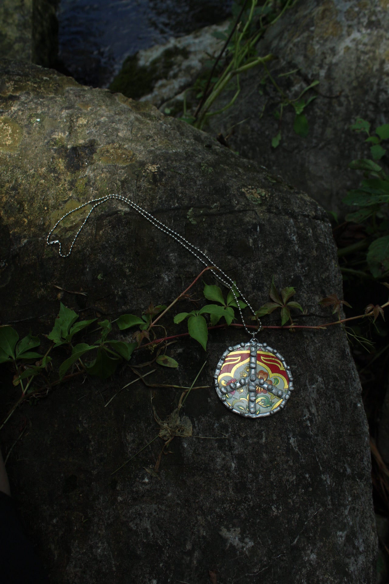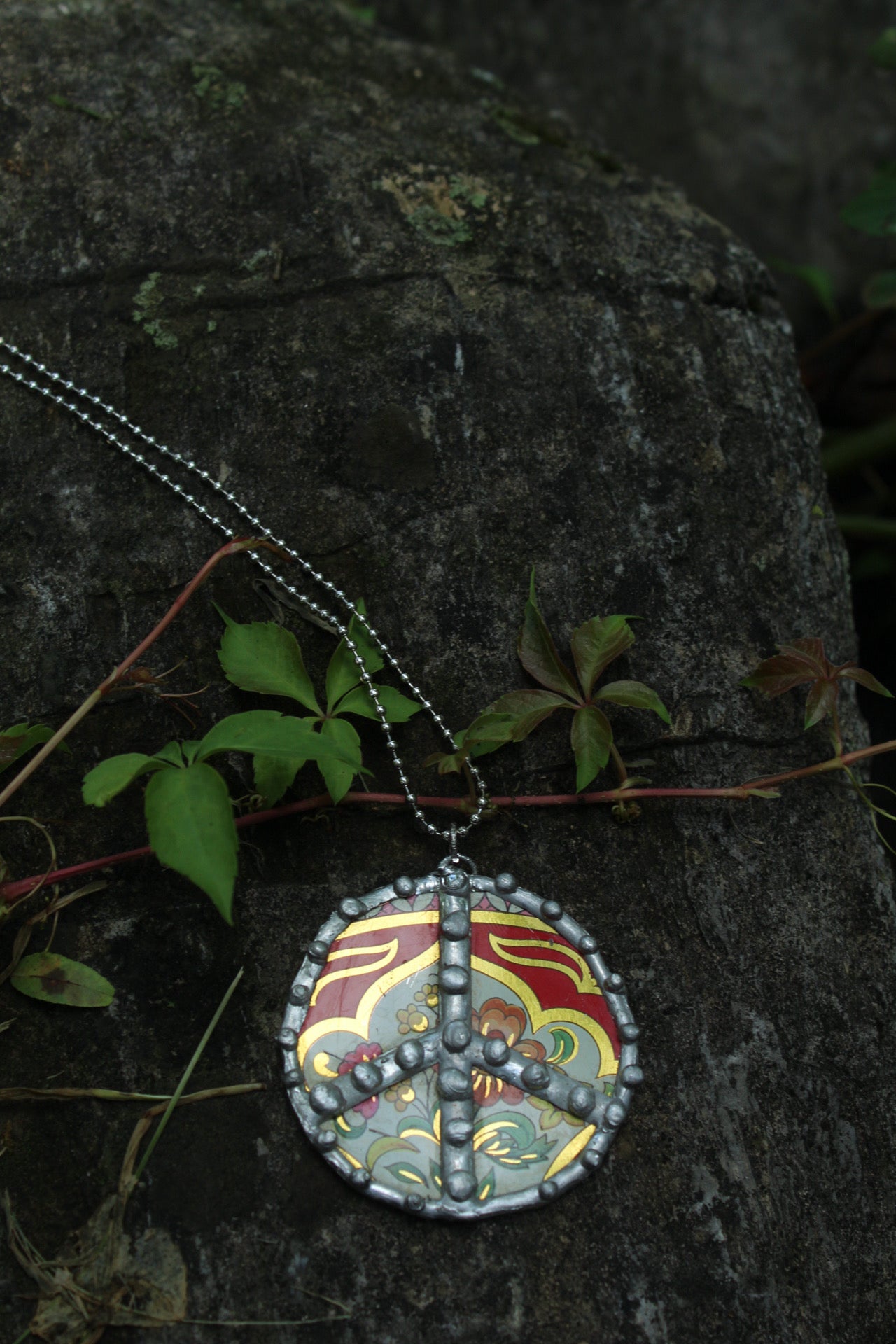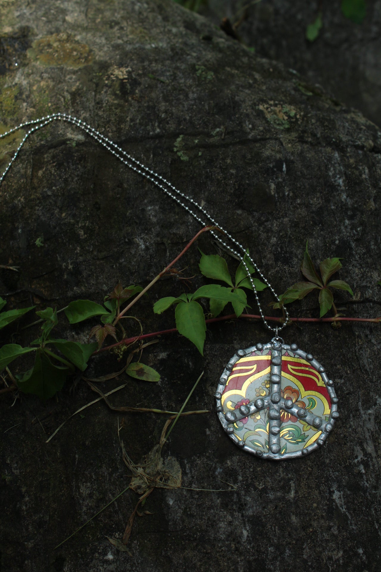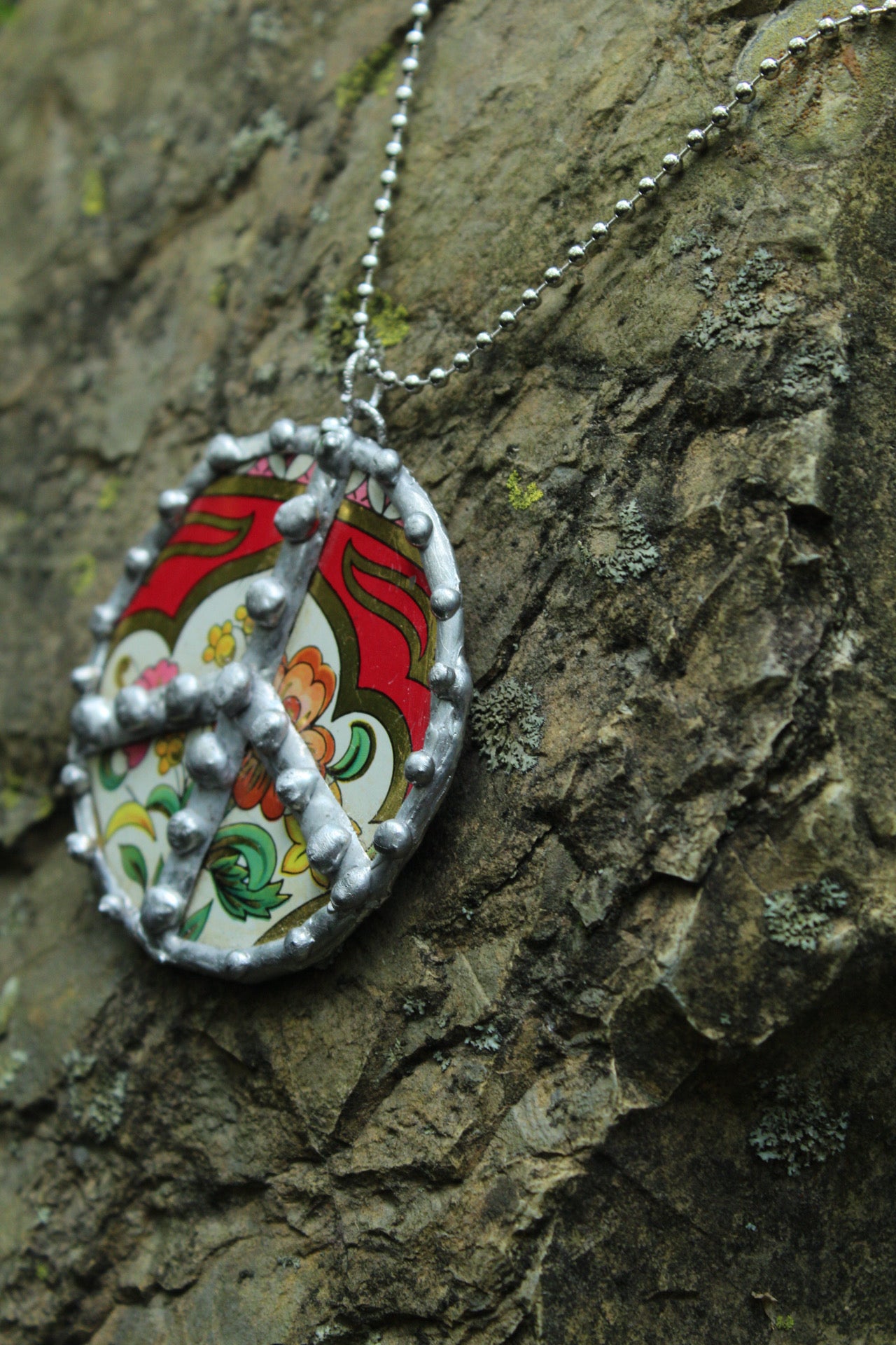 Hand soldered, hand cut vintage tin pendant on a ball and chain. Very unique, one of a kind, and super special. Can switch pendant out for a necklace or chain you have!