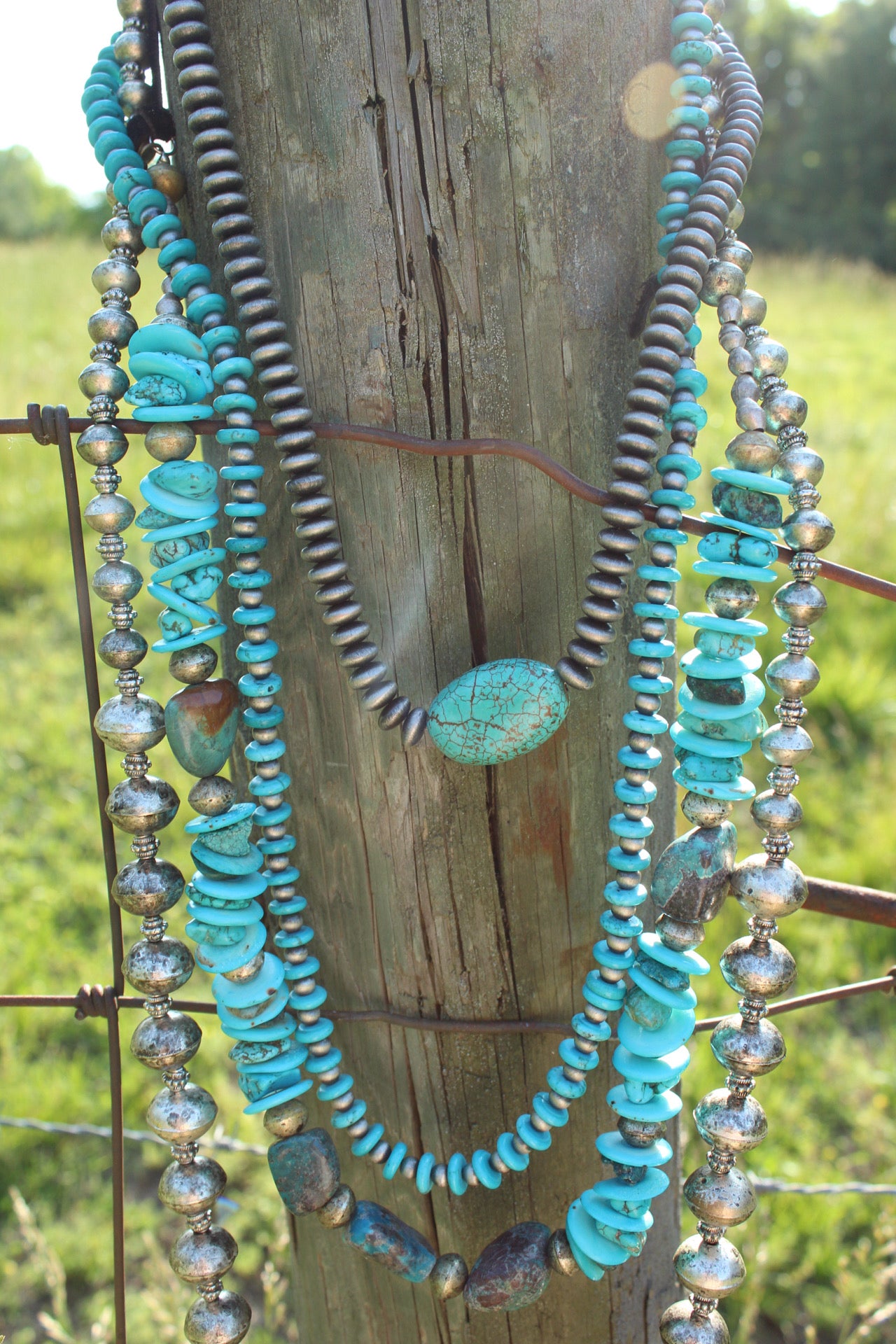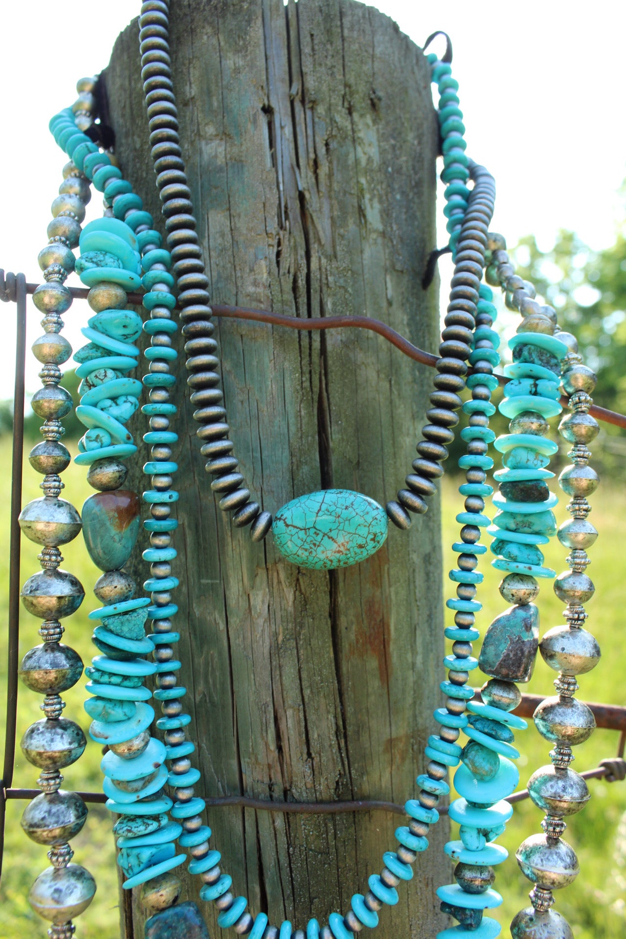 Necklace- Long Turq + Navajo Pearl Rounded
