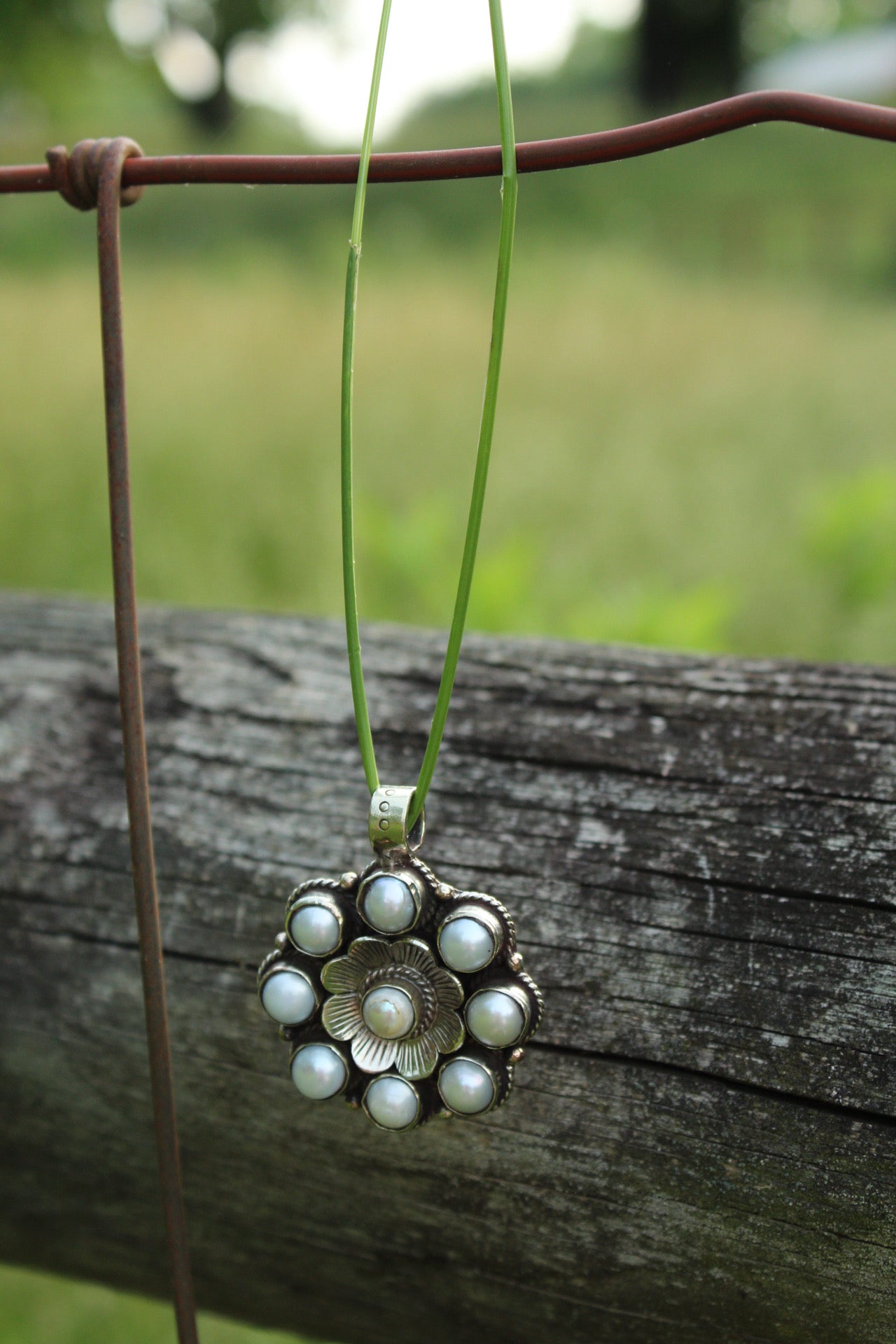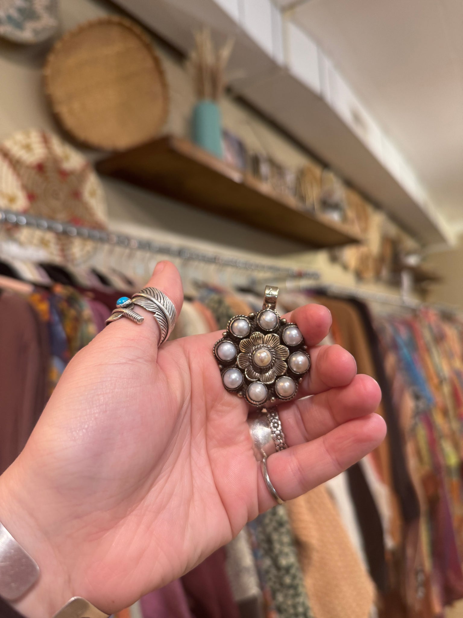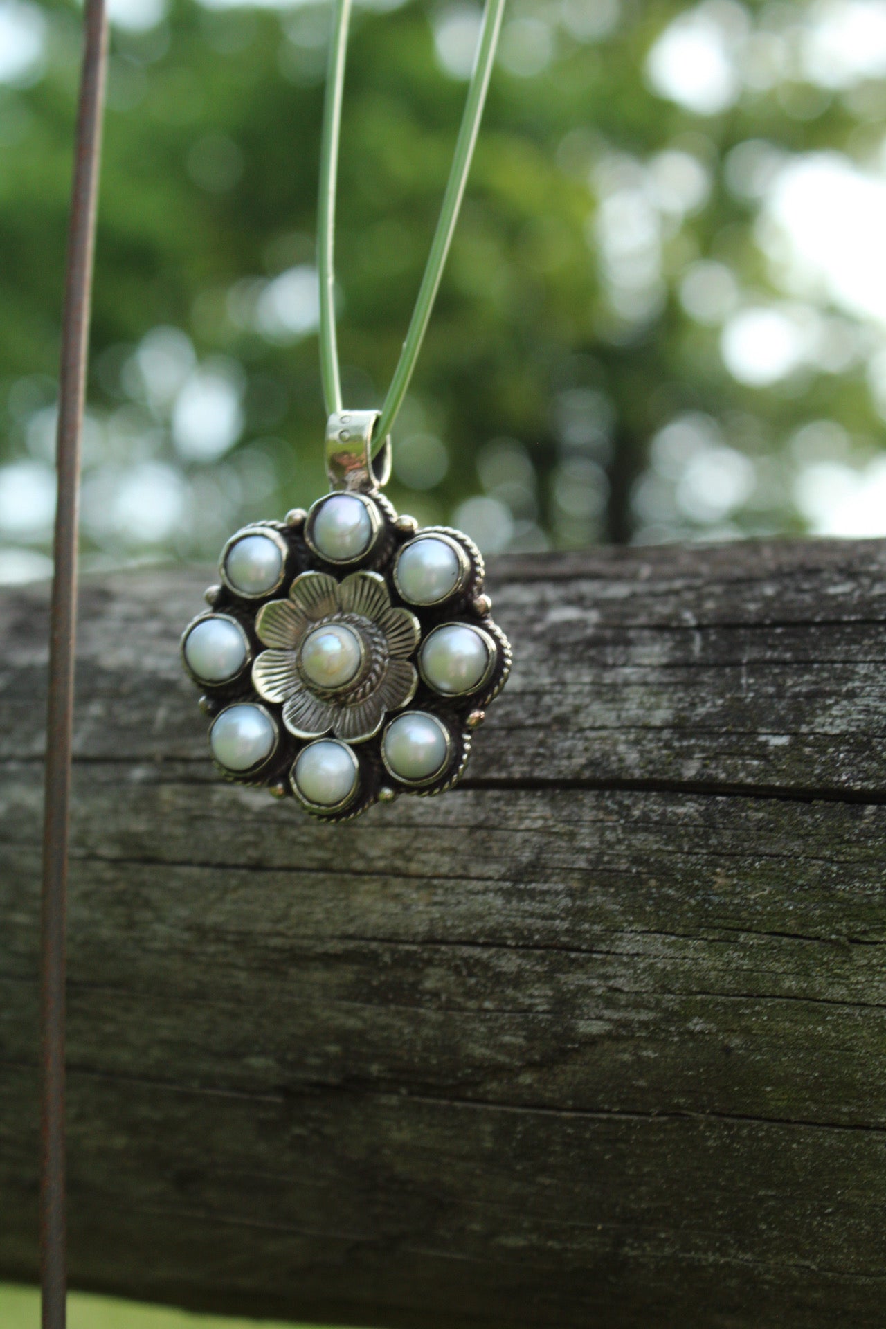 Tibetan silver pendant with fresh water pearls. Can be worn on any necklace