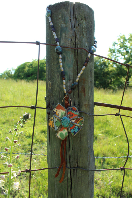 Necklace- Vintage Tumbled Mexican Tile Flower