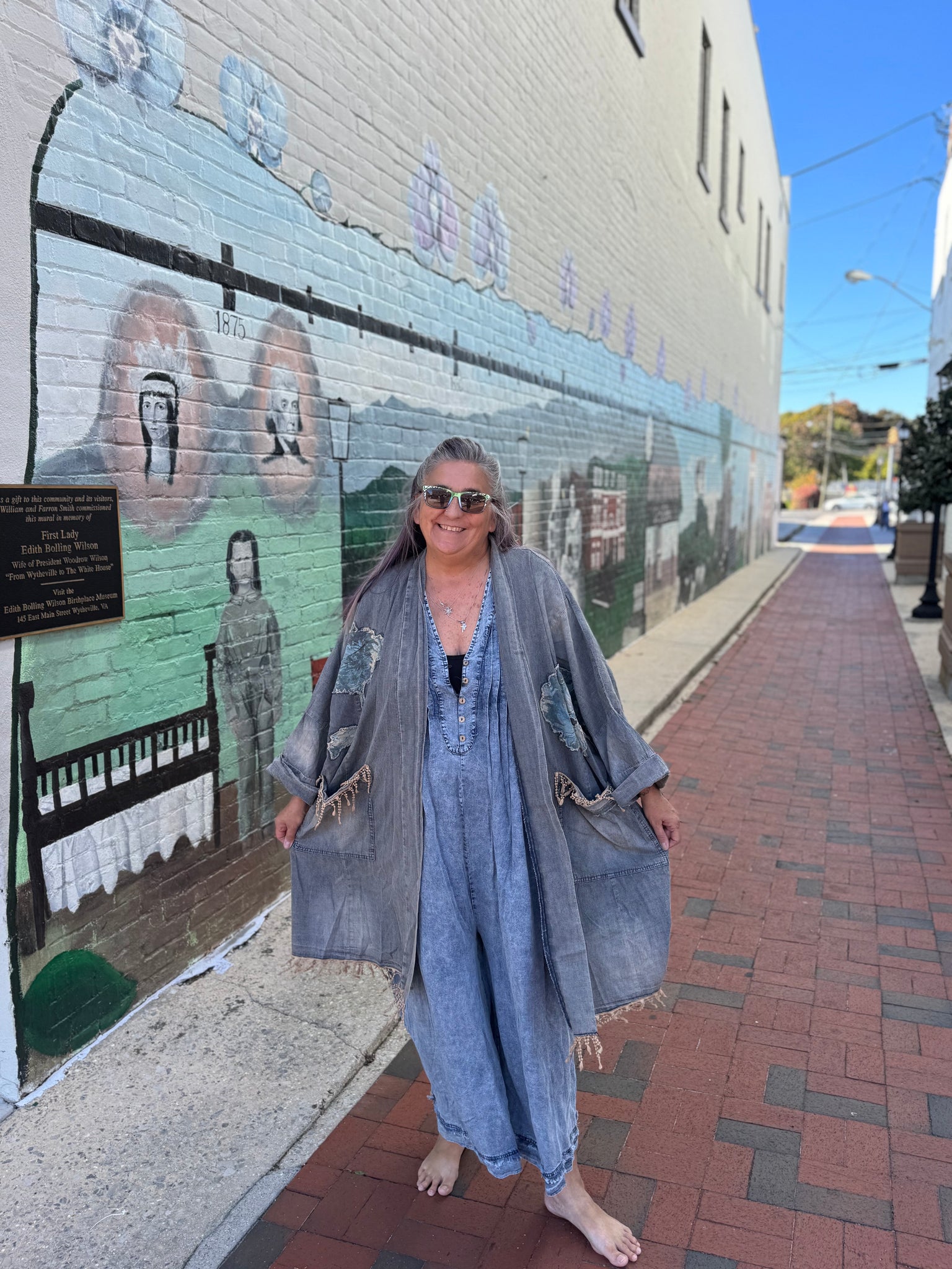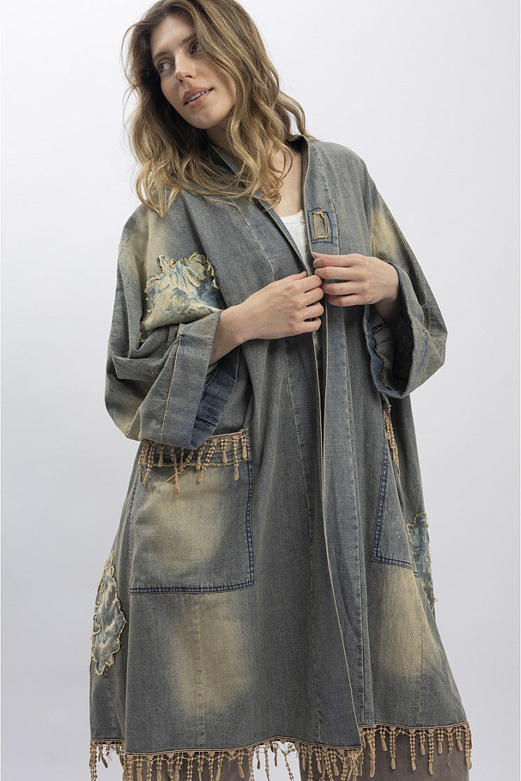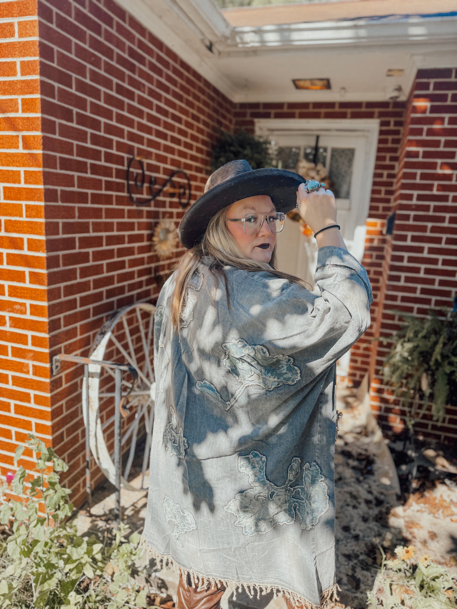 VINTAGE FLOWER PATCHWORK DENIM OVERSIZED KIMONO