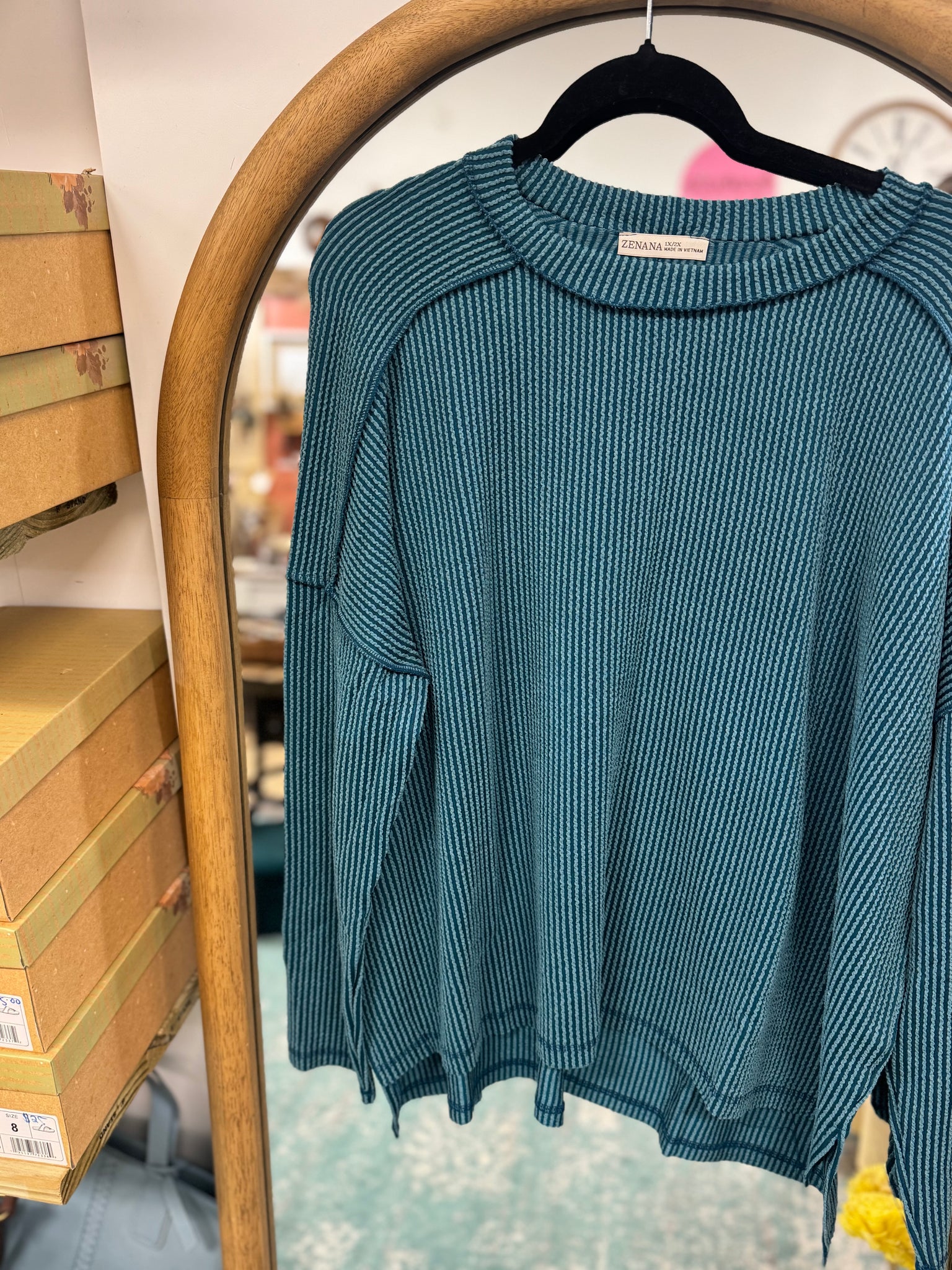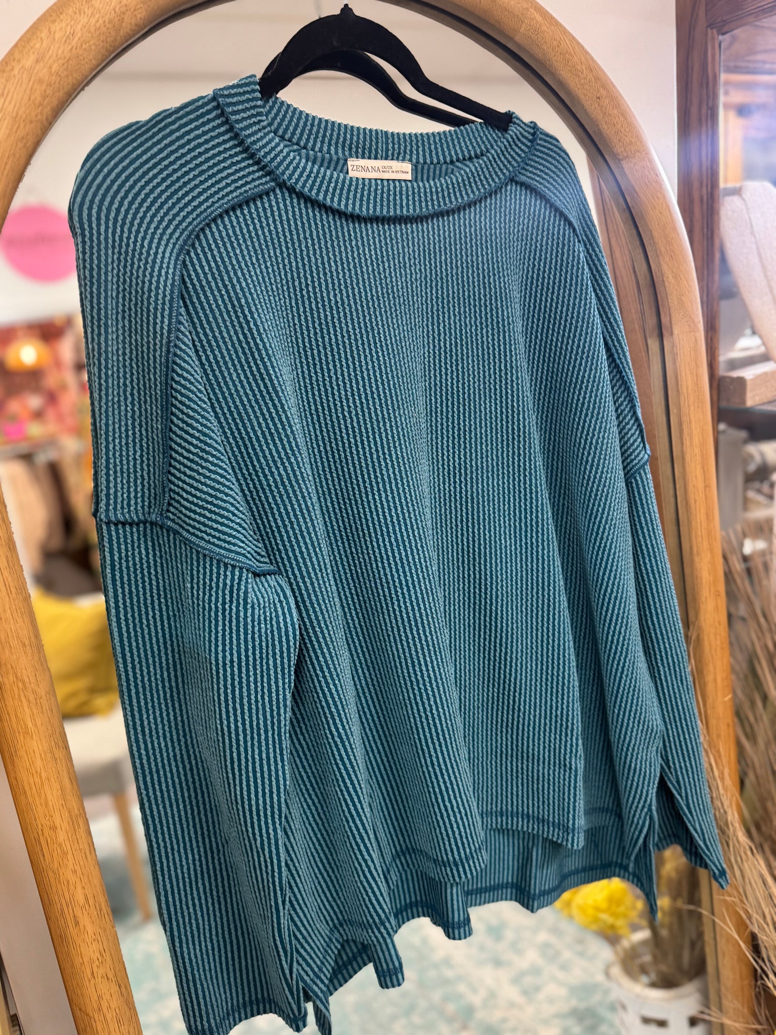 Zenana- Curvy Teal Ribbed Boat Neck Sweater