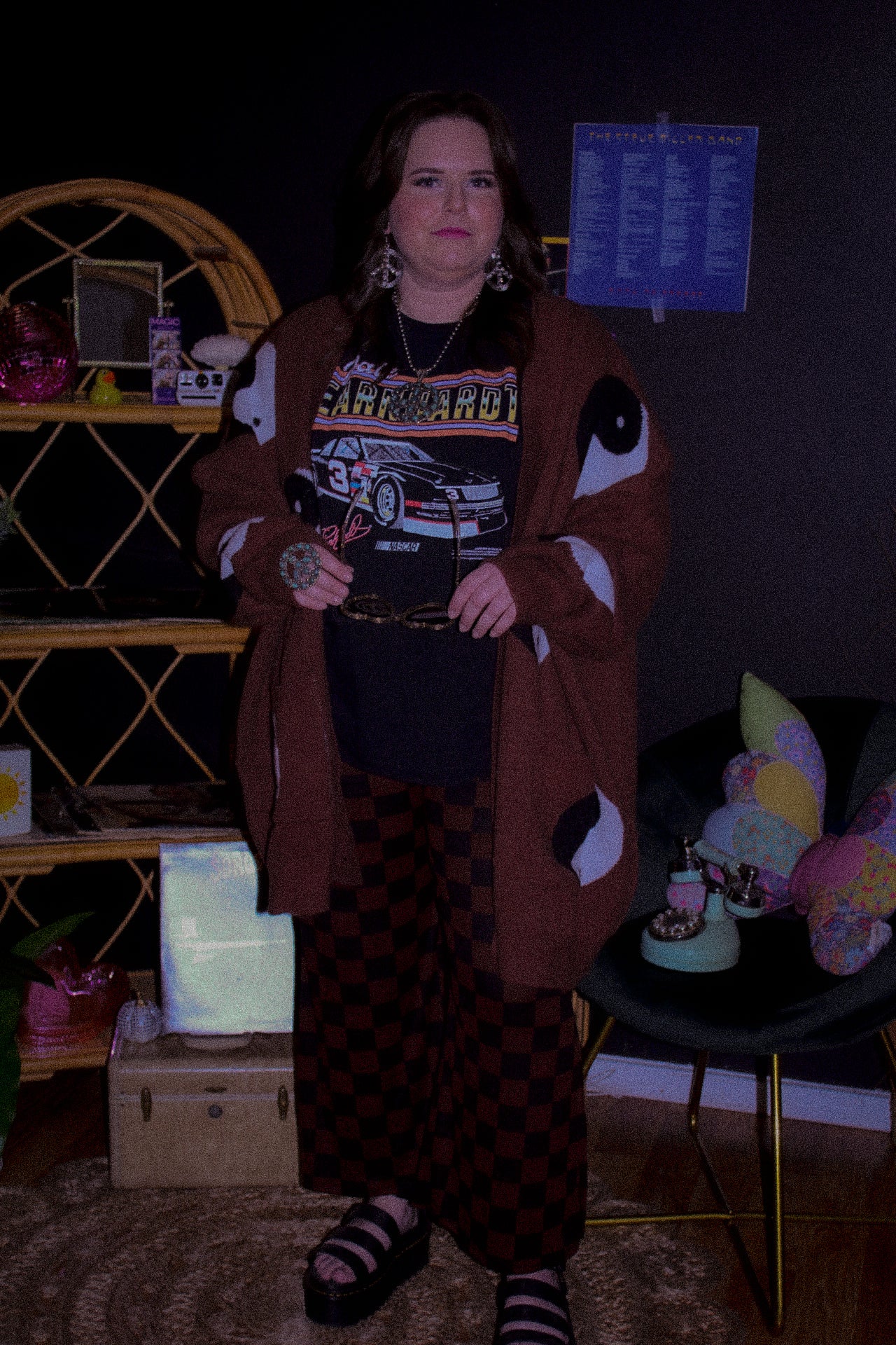One size fits 8-22/24. Oversized fit cozy cardigan. Pockets. So many ways to style and so comfy!